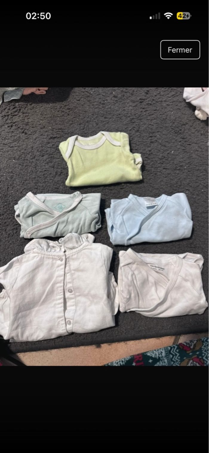 vêtement non taché, non troué et toutes les pressions ferme parfaitement . Vêtements mis peu de fois propre de différentes marques. Ils feront le bonheur de vos loulous☺️