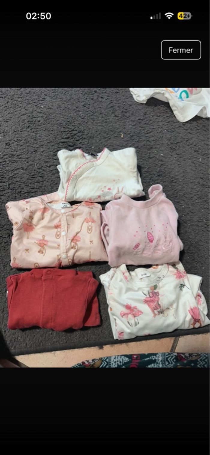 vêtement non taché, non troué et toutes les pressions ferme parfaitement . Vêtements mis peu de fois propre de différentes marques. Ils feront le bonheur de vos loulous☺️