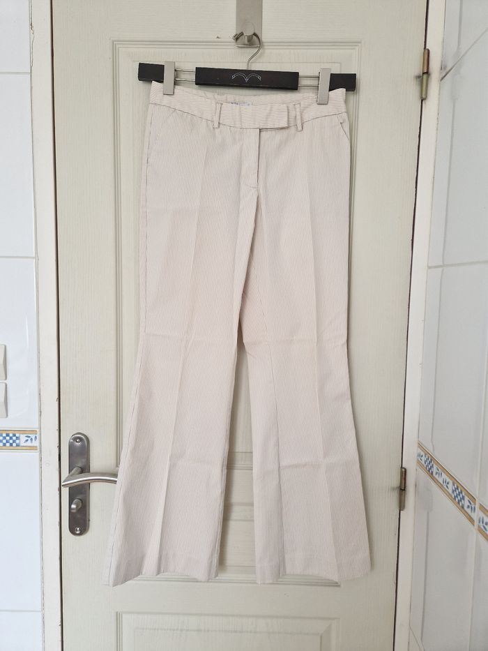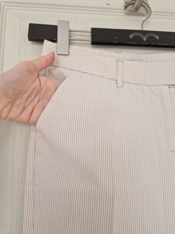 Pantalon en très bon état Beige et blanc à rayure Il y a 2 poches à l'avant et une à l'arrière Mim Taille M/38 68% de coton