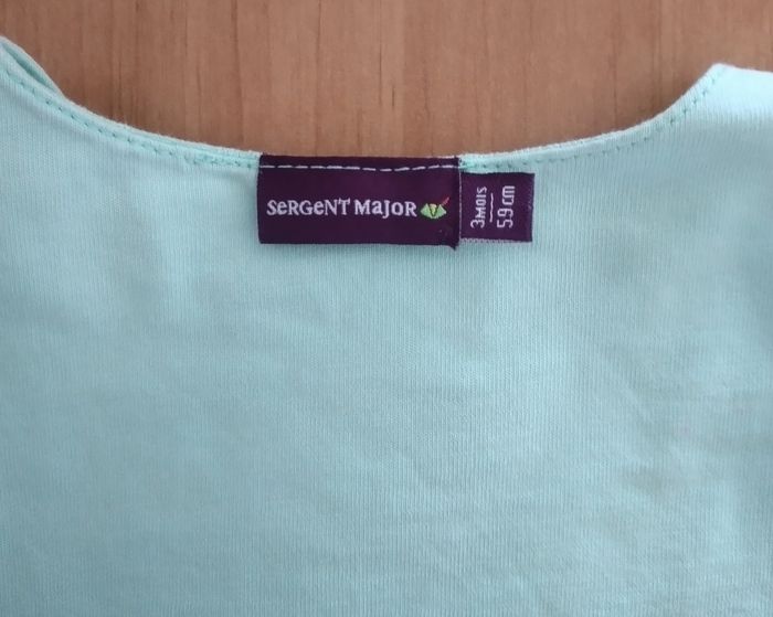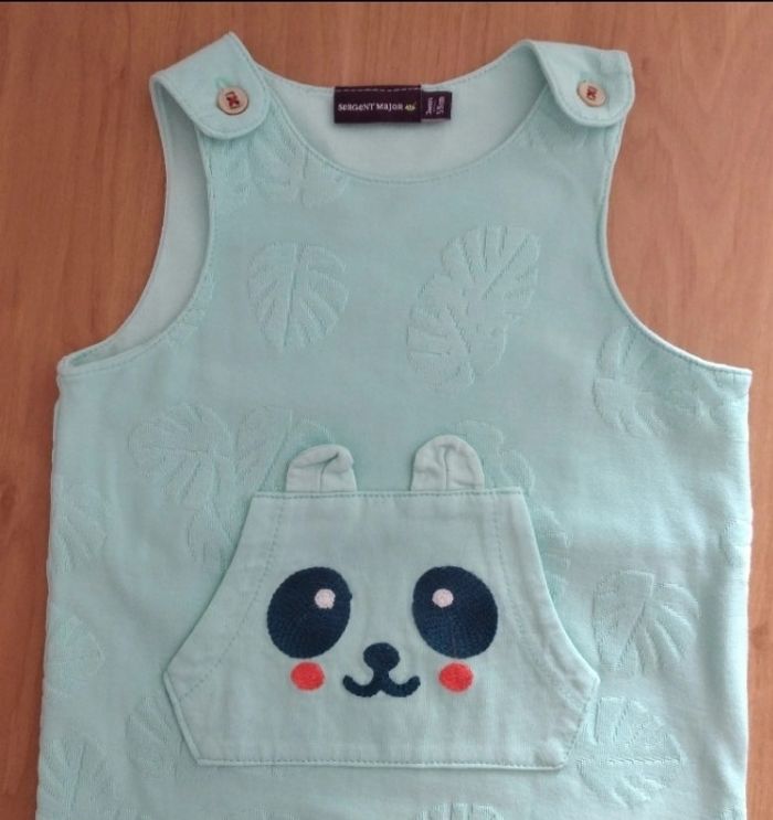 Salopette short 3 mois garçon Vert clair avec motifs, une petite poche kangourou, boutons à pression au niveau des jambes Marque: Sergent Major