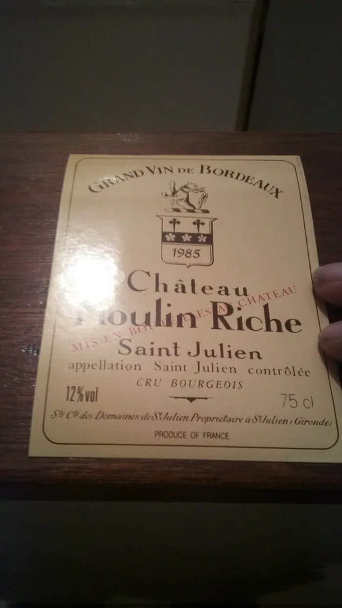 Étiquette De Vin Château Moulin Riche Saint Julien 1985 Neuve -