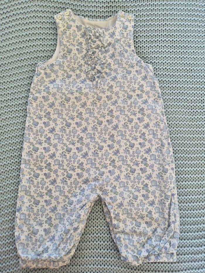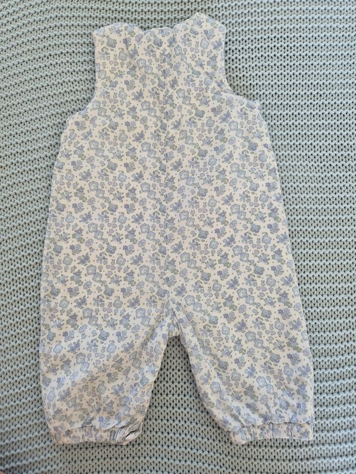 Salopette blanche à fleurs bleues, doublée. Marque Jacadi Taille 6 mois. #mimidacfille #mimidacfille6mois