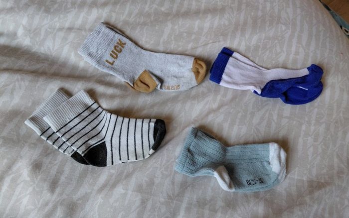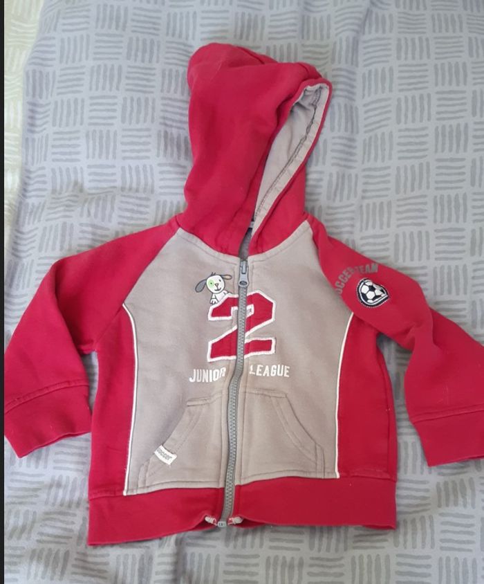 Lot vêtements garçon 24 mois : -Gilet tricky tracks 24 mois avec capuche rouge foncé marron - Polo Tape a l'oeil 24 mois manches longues marine - Pull fin, 24 mois, unisexe, avec capuche, bleu marine blanc - Pull Kidkanaî 24 mois sans manche beige foncé - T-shirt Kiabi 2 3 ans gris - Pyjama Kimbalo, 24 mois vert pale 1 piece - 4 paires de chaussettes, pointure 23 26, ont été bien portées mais restent en bon état. lot 1