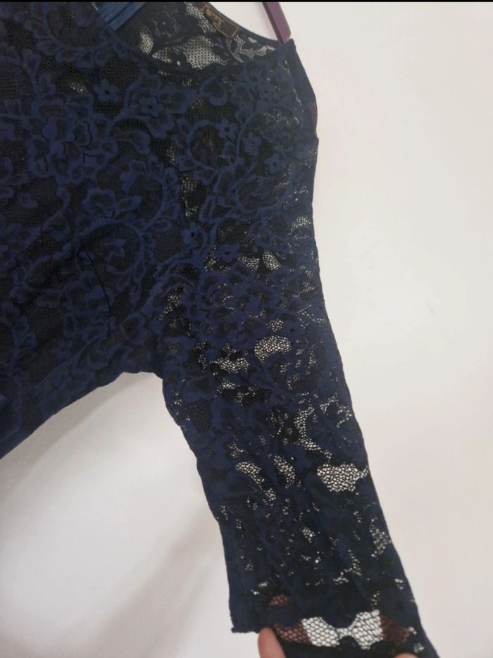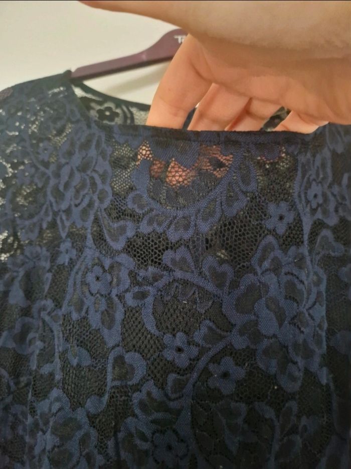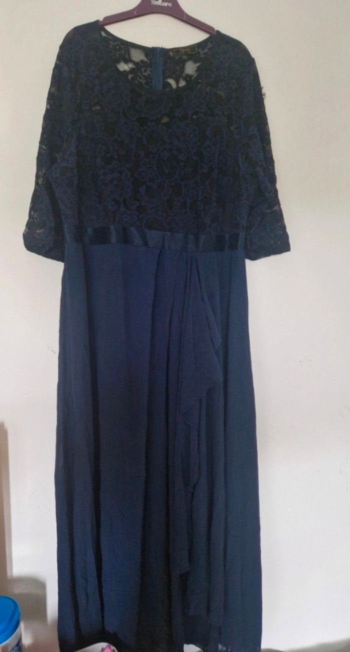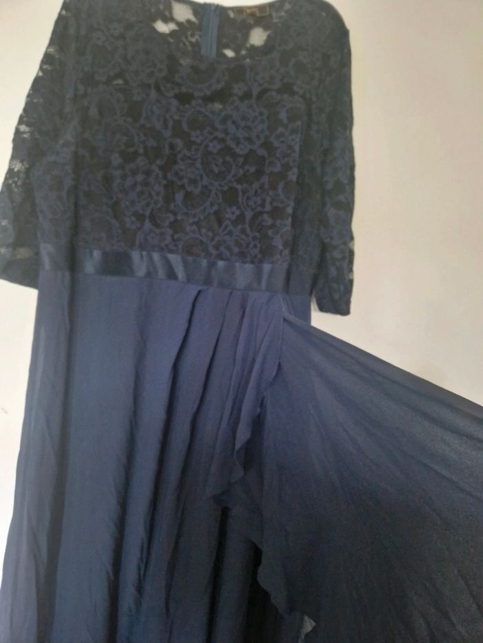 Robe longue élégante cintré sous la poitrine le haut est en dentelle avec des manche 3/4 en dentelle ajouré elle a un drapée fluide sur le devant Cette robe na jamais était porté je l'avais acheté pour un mariage mais jy suis pas aller donc elle dort a la maison pour rien ☺️