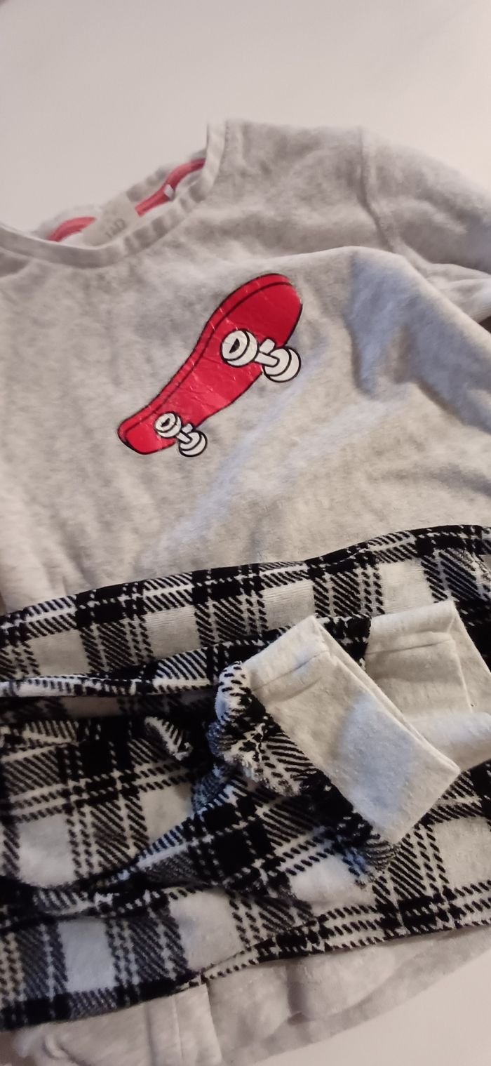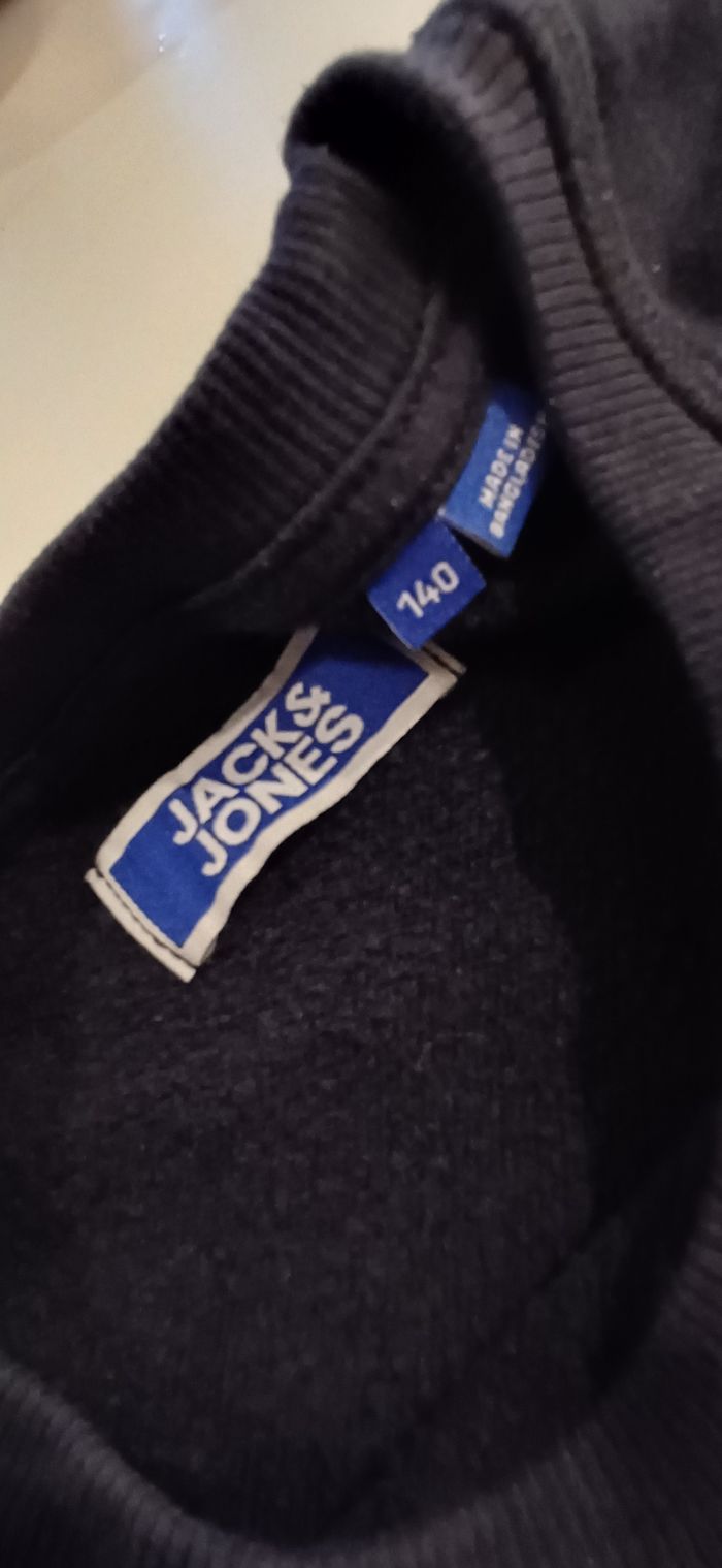 Un sweat jack and Jones taille 140 Un jean droit large, taille 10 ans college league Un pyjama 2 pièces (longues manches et pantalon).Bien chaud. Dessins sur le dessus, en bon état. Mais pyjama est en tres bon etat. Tout est en très bon état.