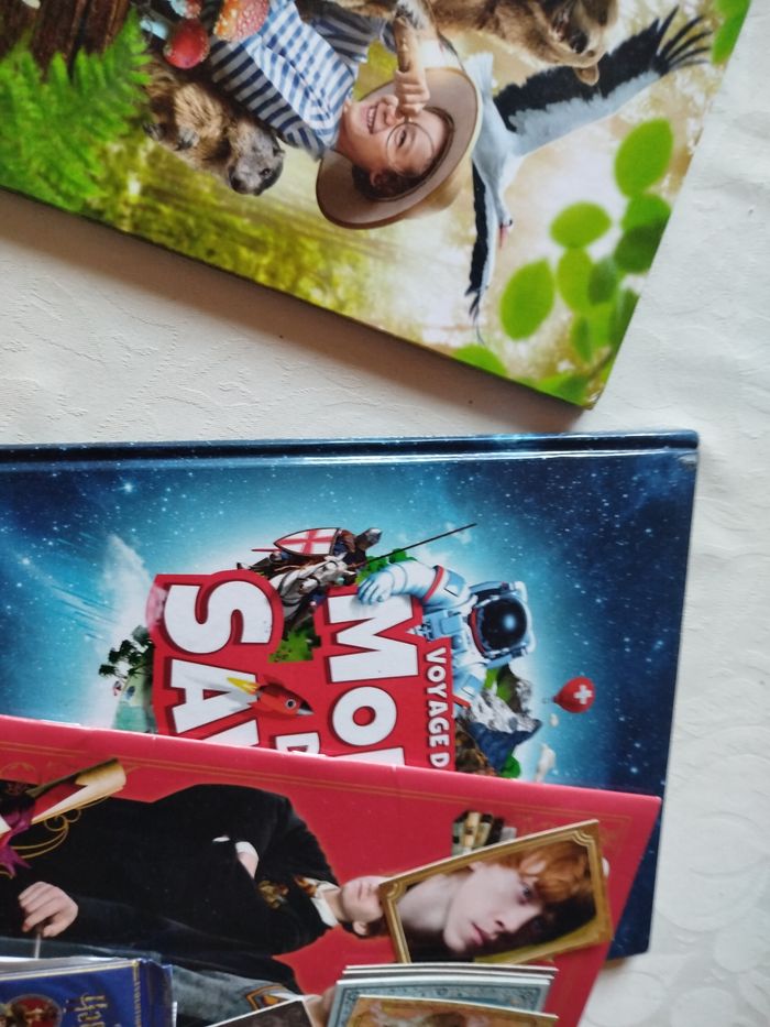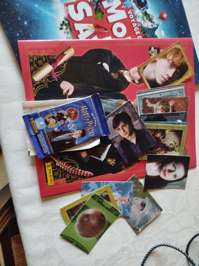 Voyage dans le monde du savoir : un nom écrit à l'intérieur, il manque environ 20 vignettes.Un petit accroc La nature, quelle aventure : très bon état,quasi vide Harry Potter le manuel du sorcier vide Un booster panini et une dizaine de cartes en vrac