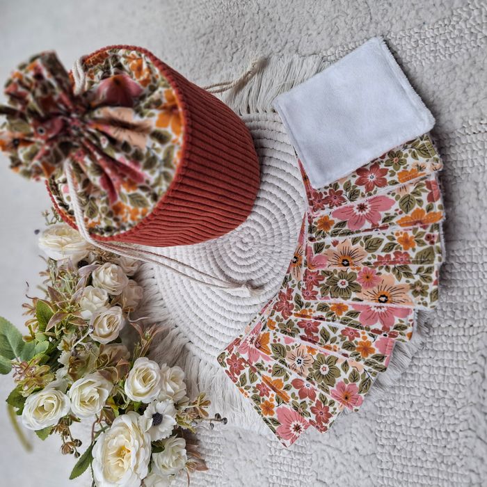 - Joli pochon rond pour ranger et transporter vos produits de toilettes ou maquillage . - Parfait pour offrir ou se faire plaisir - Composition tissus 100 % Coton et velours côtelé 100% Polyester - Couleur terracotta - Dimension environ 13 cm de diamètre sur une hauteur de 22 cm total le velours côtelé mesure 14 cm de hauteur - Lot de 10 lingettes lavables . Lingettes bébé où Lingettes à démaquiller - Dimension 10 cm par 10 cm #LaboutiquedeCharliepochonrond