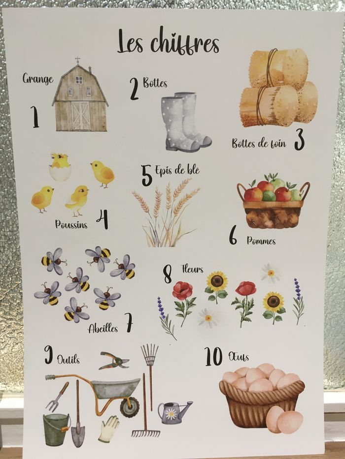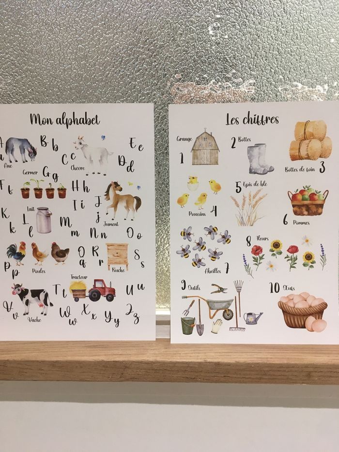 Lot de 2 affiches thème Animaux de la ferme / campagne —> 1 affiche Alphabet —> 1 affiche chiffres Neuves ! Édition limitée d’un imprimeur Bordelais Format A4 D’autres affiches également disponibles dans mon dressing ;) #cadeaunaissance #idéecadeau #idéedéco #mer #océan