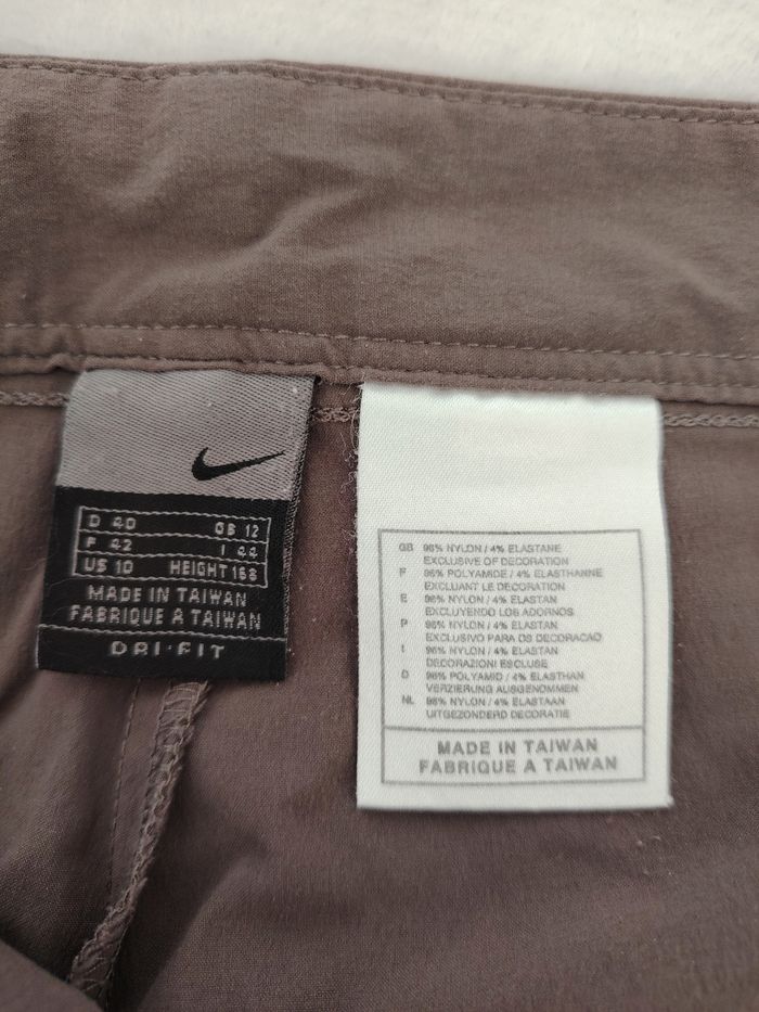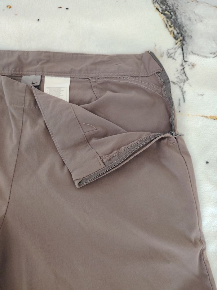 Je vends ce pantalon Nike Vintage (technologie Dri-Fit), couleur taupe/marron glacé. Une pièce super confortable avec une coupe légèrement évasée et un détail fendu hyper stylé au bas des jambes. Parfait pour un look sportswear vintage ou outdoor. ​Marque : Nike ​Taille : 42 (FR) / L (voir mesures sur photos) ​Couleur : Taupe ​Détails : Fermeture éclair discrète sur le côté, logo Swoosh brodé. ​État : État satisfaisant. À noter : Présence de bouloches et d'usure du tissu à l'arrière du pantalon, à l'intérieur comme à l'extérieur (voir les deux dernières photos pour plus de détails). Le prix tient compte de ces défauts. ​Mesures : ​Taille à plat : env. 41-42 cm ​Longueur totale : env. 81 cm
