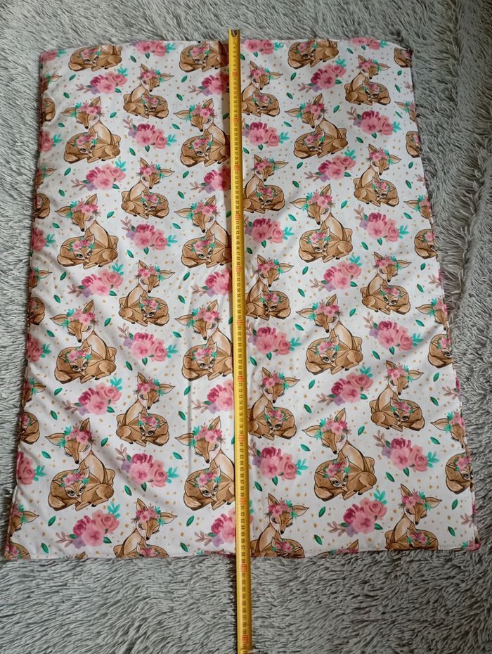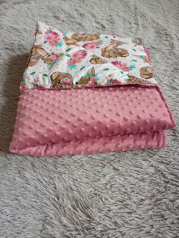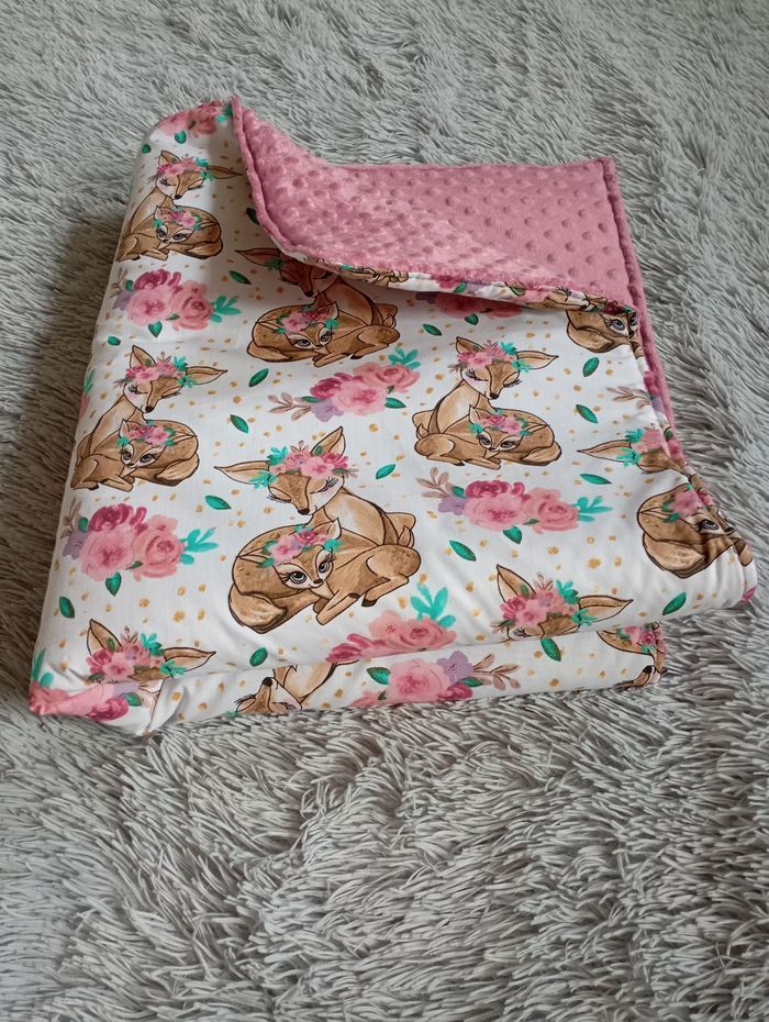 Couverture hiver bébé fille Motif floral biche coton Tissu vieux rose minky 75x95