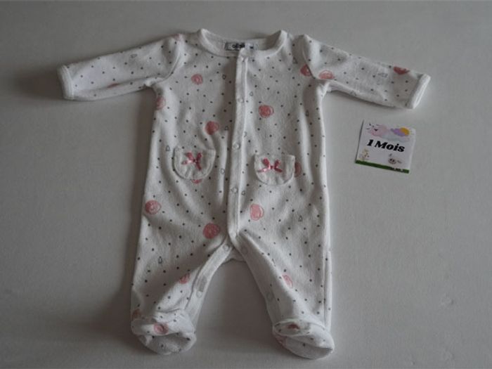Pyjama velours blanc/gris/rose fantaisie Gémo Taille : 1 mois
