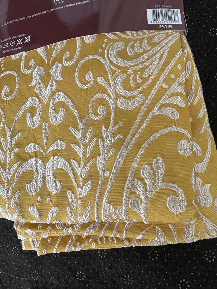 Sublimez votre pièce avec ce lot de 2 rideaux en jacquard au motif damassé élégant. Tissage texturé de qualité pour un tombé lourd et chic. • État : Neuf • Dimensions: 140 x 250 cm. • Finition : Œillets métalliques (prêt à poser). • Couleur : Jaune moutarde / Ocre et Blanc. • Style : Idéal pour une déco chic, vintage ou moderne. Envoi rapide et soigné. •Quantité: 2 panneaux #rideau #voilage #jacquard #curtains #gordijnen #cortinas #tende #vorhang #zavesy #gardinen #homedecor #decoration #maison #salon #deco #jaunemoutarde #ocre