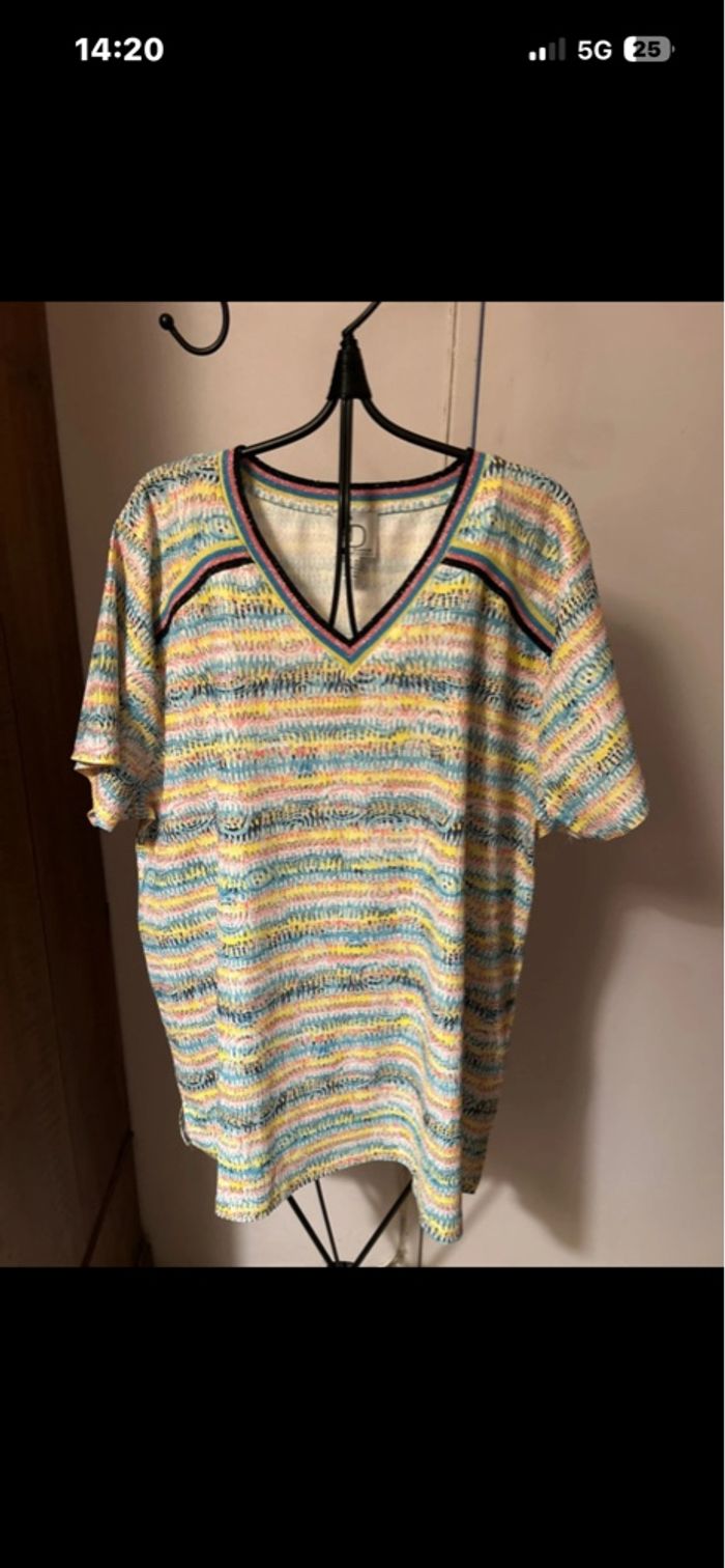 Tunique T shirt de la marque Guy Dubouis taille 54, dimensions aisselles 72 cm En très bon état Multicolore avec brillant au niveau du col