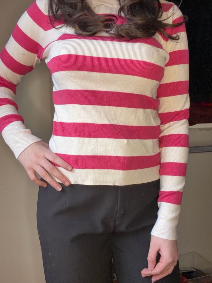 Pull pimkie a marinière beige et rose