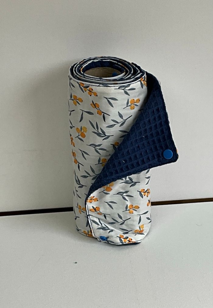 Rouleau 6 feuilles essuie tout lavable reliées les une aux autres par des pressions. Feuille 22x22 cm environ en coton imprimé / éponge nid abeille pour plus d absorption. Lavable en machine à 40° et réutilisable.
