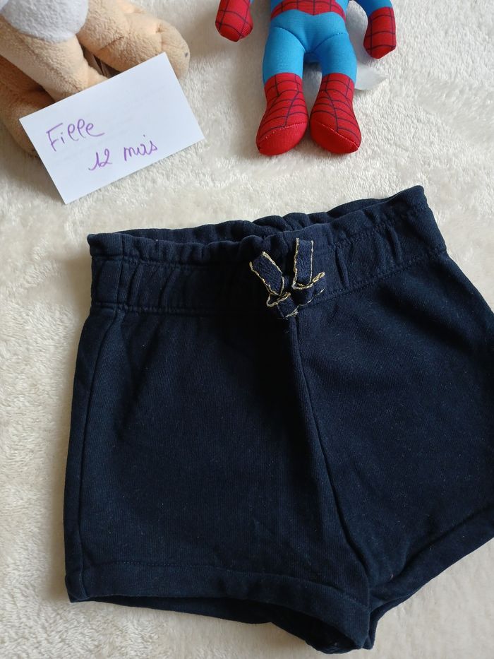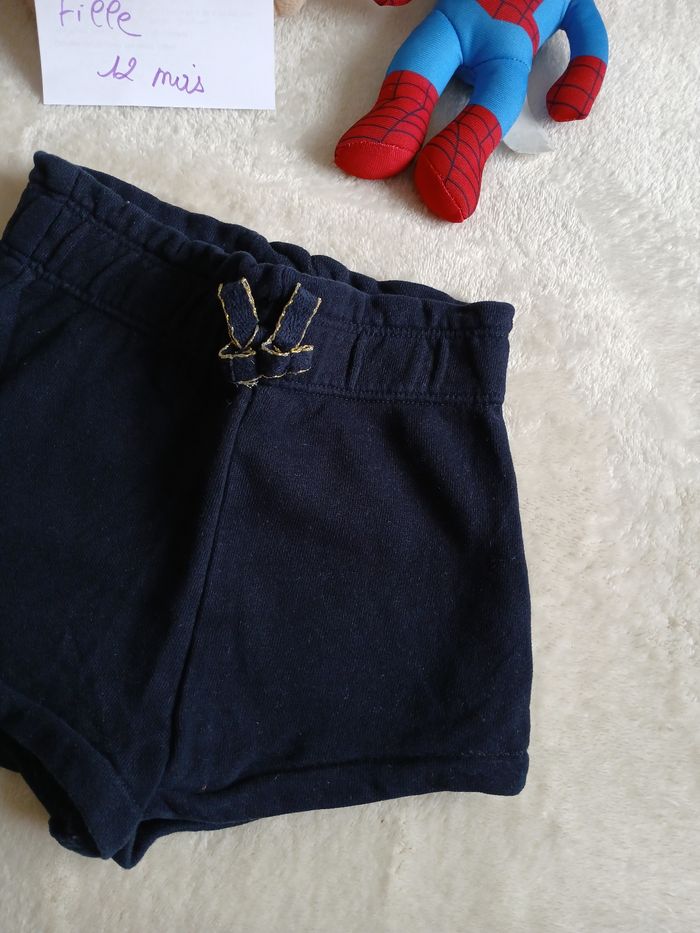 Short fille tres bon état bleu marine de taille 12 mois en coton de marque kiabi