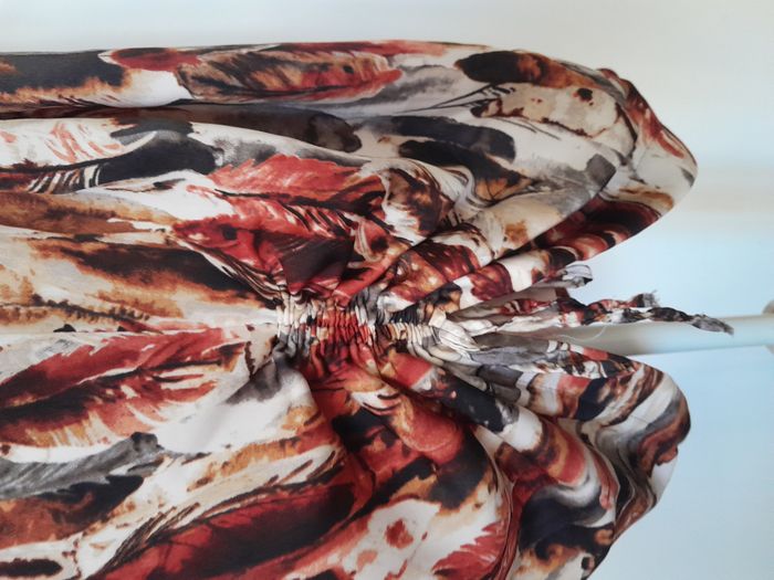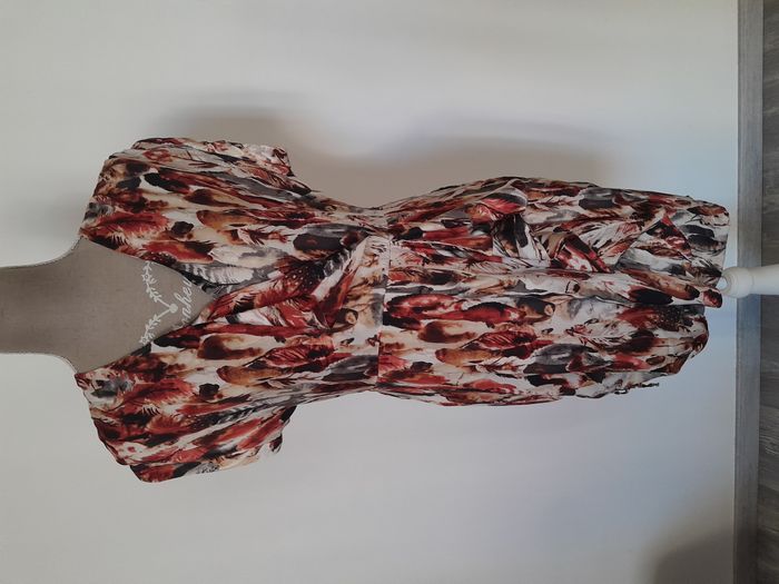Robe chic, imprimé, volant sur le haut et le côté, nœud ajustable sur 1 côté, attache fermeture éclair sur le côté Longueur : 92cm, Fermeture éclair : 30cm Aiss / Aiss : 47cm Matière : 100 % Polyester Marque : 1060 Clothes