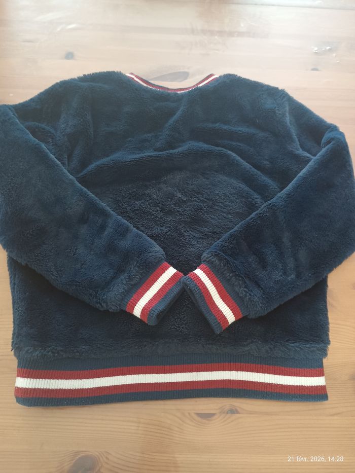 Je vends ce pull épais en polaire de la marque Pimkie, de couleur marine. - Type de produit : Pull épais - Marque : Pimkie - Taille : S - Couleur : Marine. - Matière : Polaire, polyester - Caractéristiques : Bords-côtes contrastés N'hésitez pas à me contacter pour plus d'informations ou de photos.