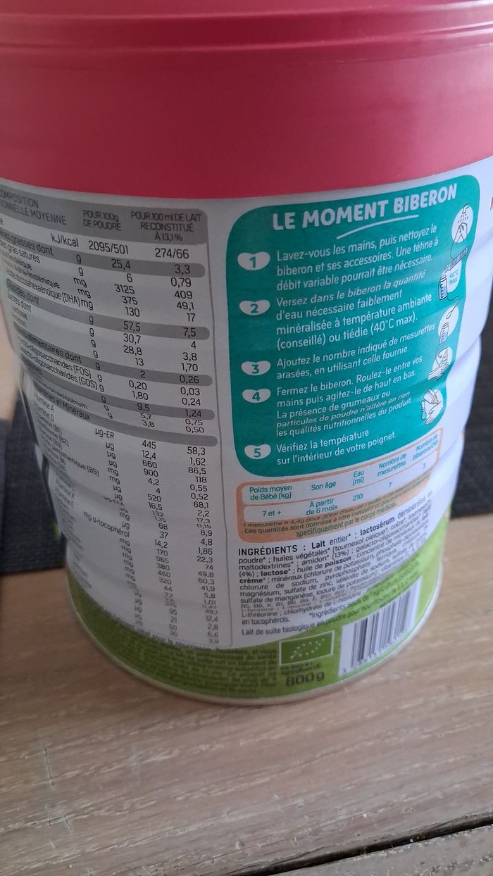 Lait 2 ème âge bio Formule épaissie De 6 mois à 12 mois Cellé jamais utilisé Date de péremption 09/12/2027 Photos nombreuses et détaillées Composition numéro service etc... Envoie rapide et emballage soigné