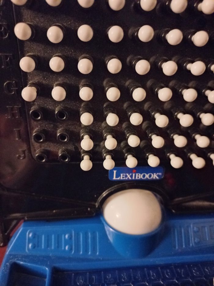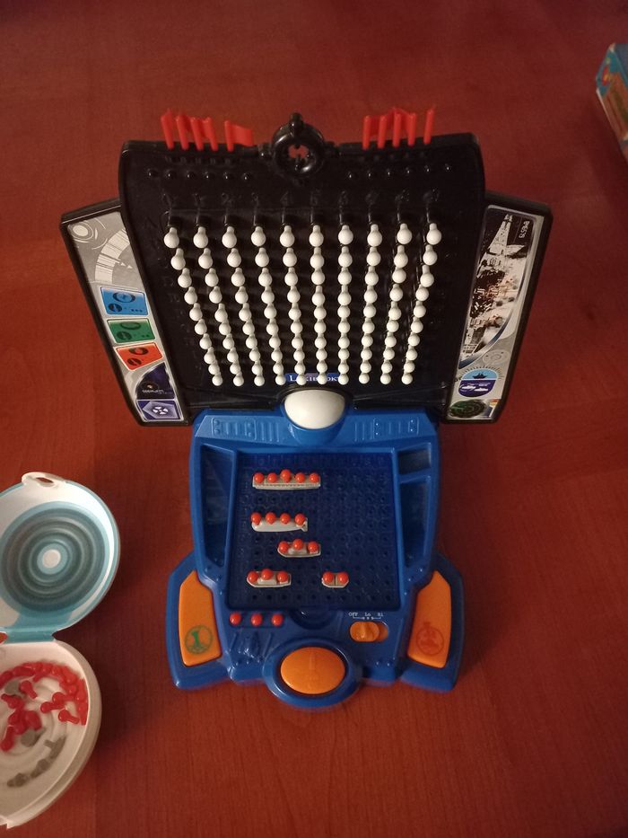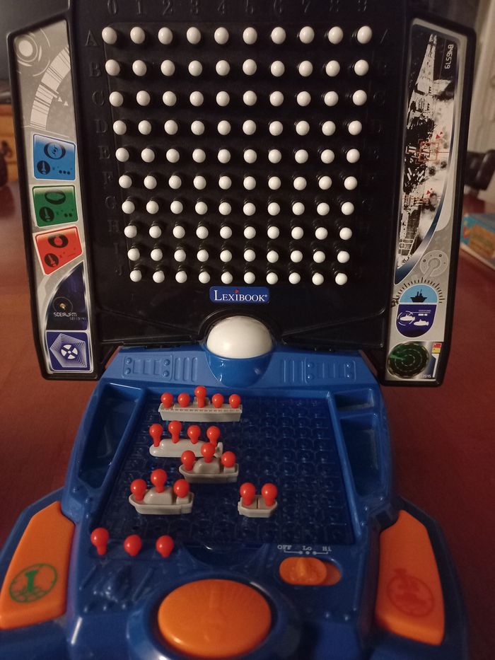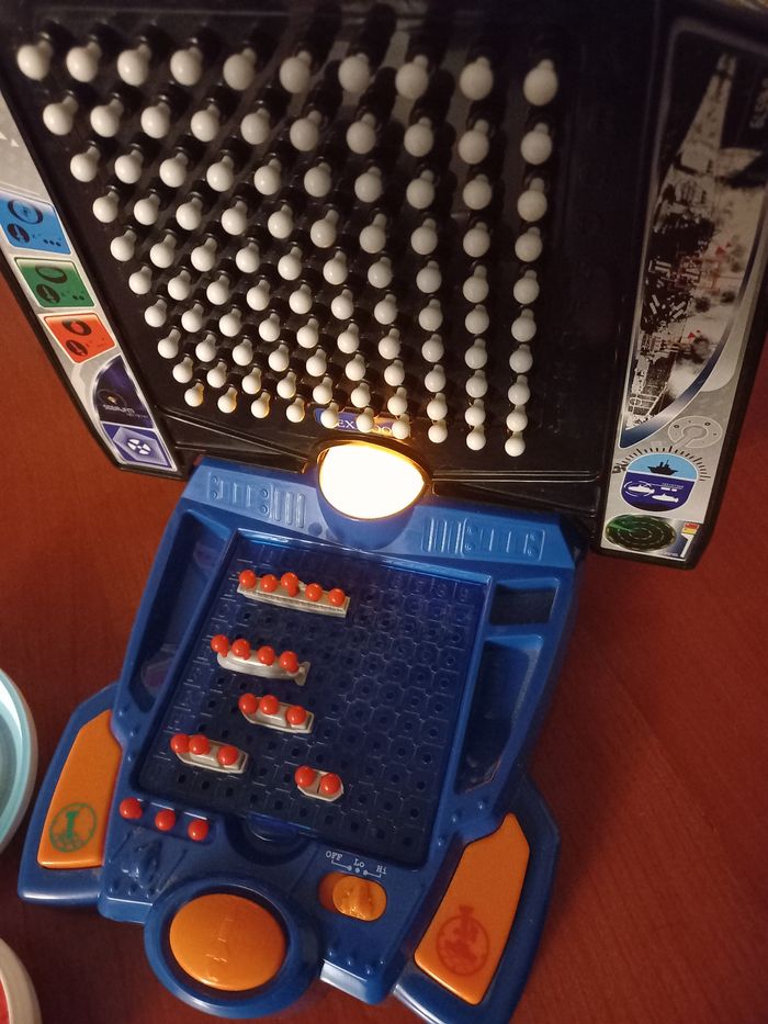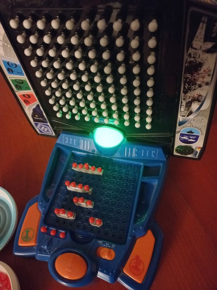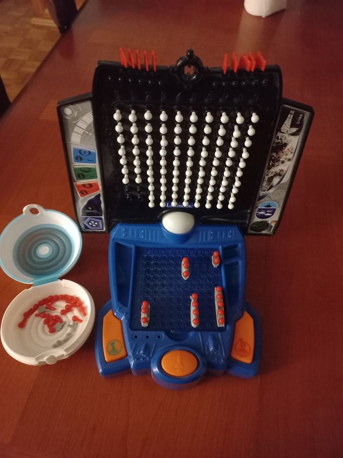 Vend le jeu bataille navale électronique en très bon état manque juste 6 pions blancs voir photo5 n'empêche en rien le jeu