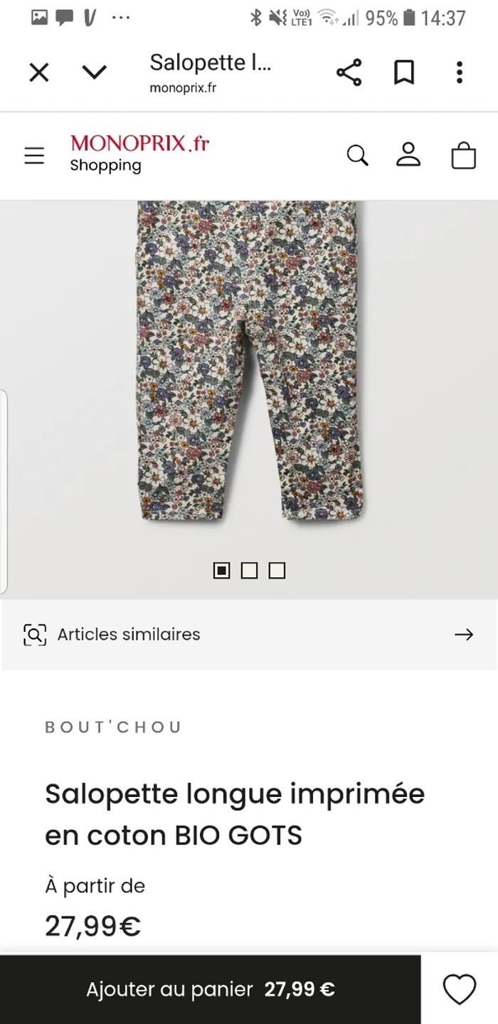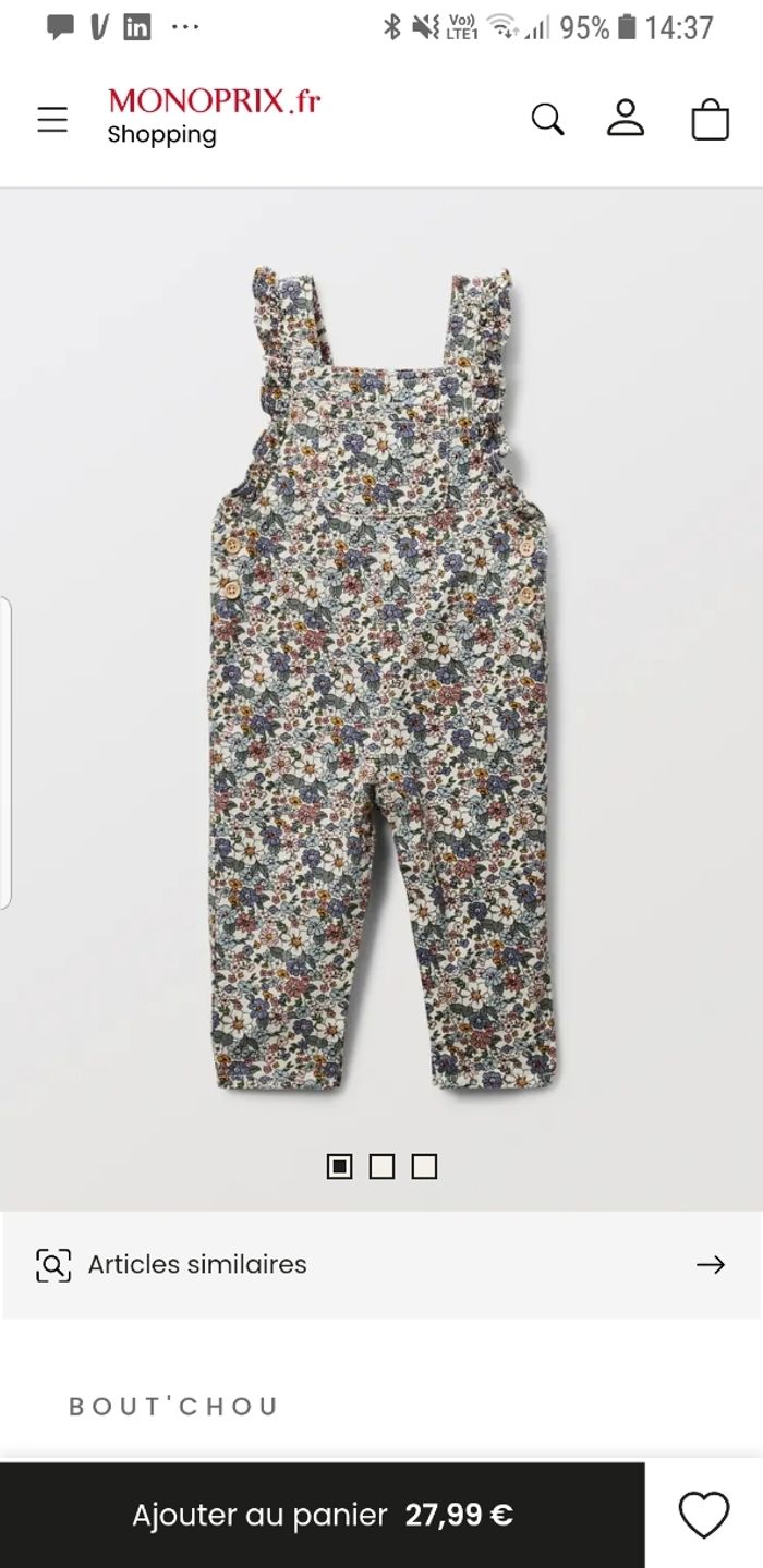 Salopette Bout chou Monoprix NEUVE. Magnifique 🤩 Taille 24 mois. Très bonne qualite Salopette similaire encore en vente sur le site Monoprix à 27.99 euros. Voir dernières photos Réduction sur lot activée D autres articles en taille 24 mois : #fille24mois_alexandra690