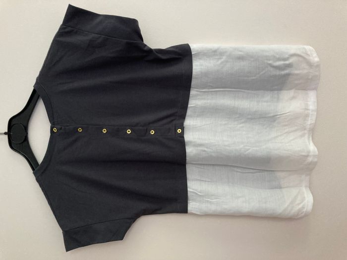 Tee-shirt Karl Marc John, taille XS. 40% Coton, 60% Polyester. Longueur épaule jusqu'en bas 56 cm (devant), 61 cm (derrière), largeur aisselle-aisselle 47 cm.