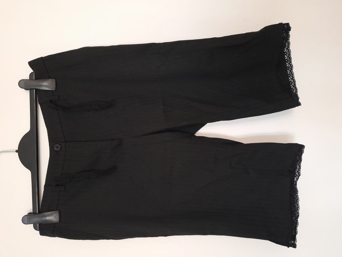 Bermuda, à rayure, 2 poche, déco en dentelle sur le bas Longueur : 60cm Taille en cm : 40 Matière : 66 % Polyester, 30 % Viscose, 4 % Elasthanne Marque : Strabosky