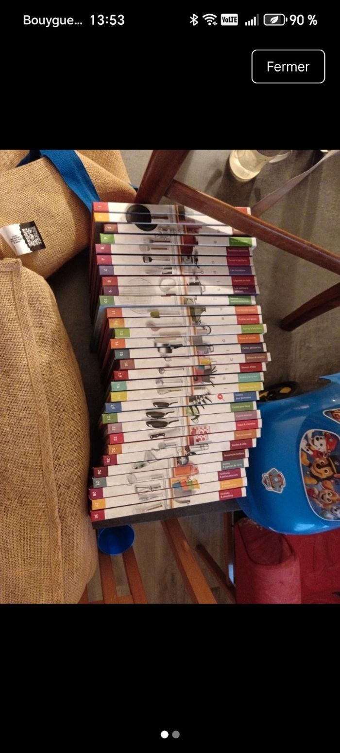 Bonjour je vend des livres de cuisine complet le livre coûte neuf 6 € Le lot neuf vaut 180€ Je le laisse à 50€ Il ont jamais été servi