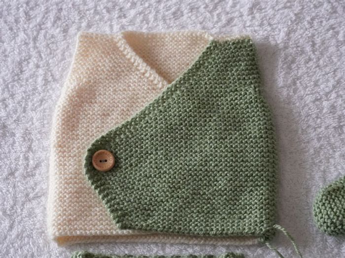 Ensemble 3 pièces vert/écru pour bébé 0/3 mois neuf  - photo numéro 5
