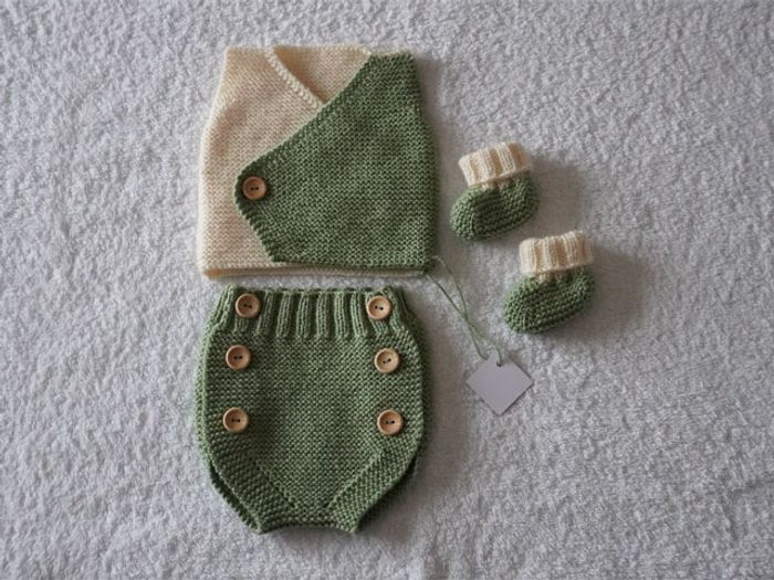 Ensemble 3 pièces vert/écru pour bébé 0/3 mois neuf  - photo numéro 1