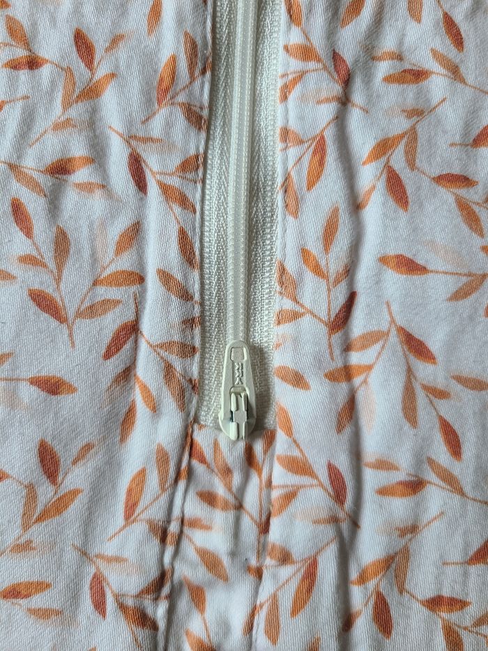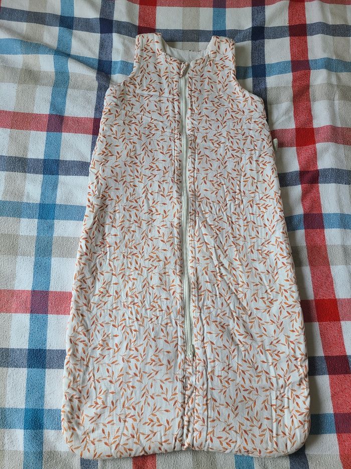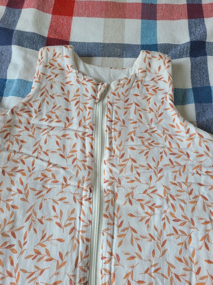 Très jolie gigoteuse Cam Cam Copenhagen à motif feuilles orangées. 6-18 mois. Tog 2.5. Très bon état général. Fermeture zippée sur le devant. Prix neuf : 60 euros.