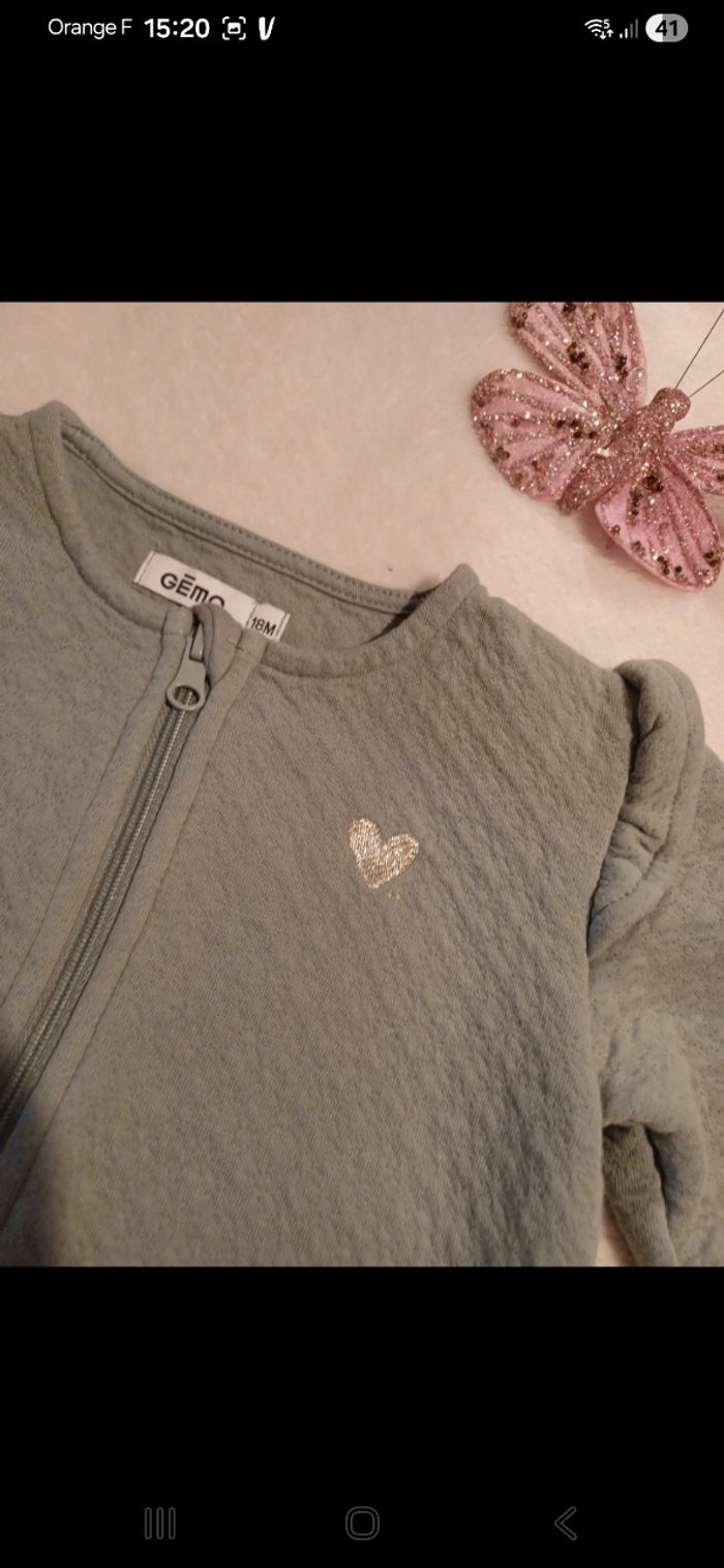 Joli sweat zippé avec petite broderie à l avant. Neuf mais attention petit défaut sur le bas d une manche ( voir photo )
