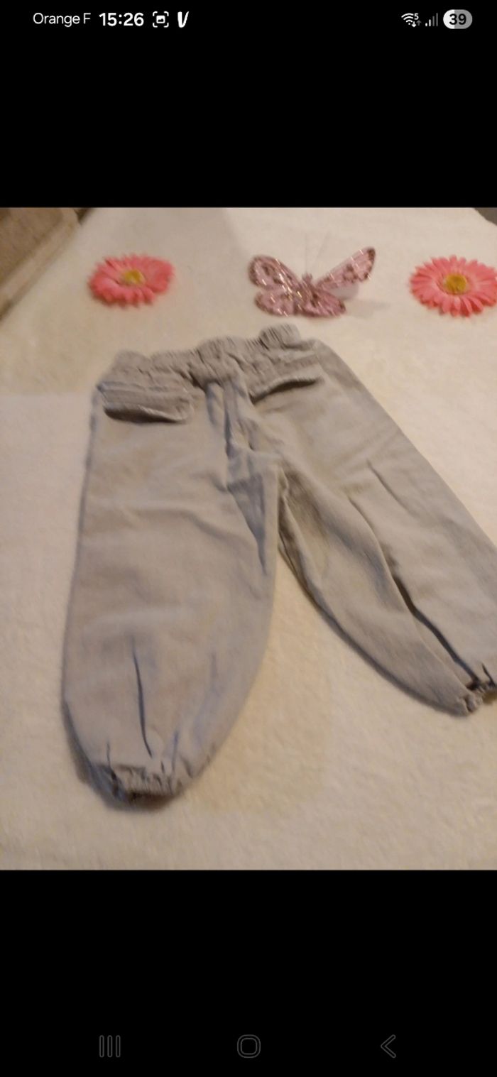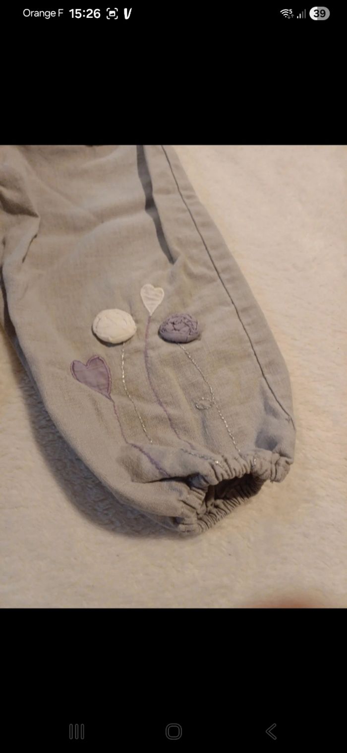 Pantalon elastiqué à la taille et au niveau des chevilles. Motif sur le bas d une jambe.