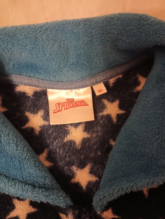 Peignoir Spiderman en 5 ans en très bon état, peignoir qui ce ferme avec une fermeture éclair