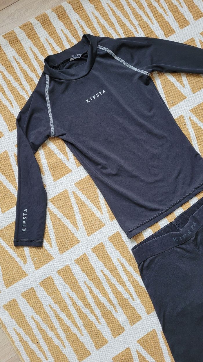 Haut ML + pantalon 'collant'. Sous vêtements thermique pour activités sportives. Noir. Kipsta. Plus d'étiquette mais 6ans. Début d'usure aux genoux.