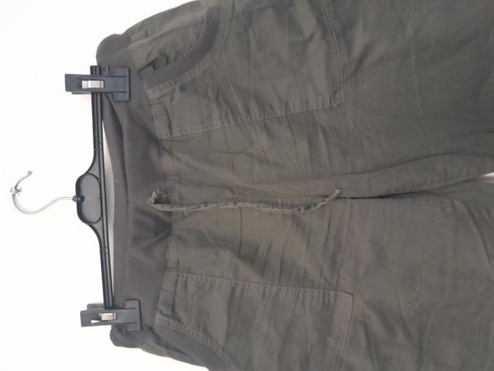 Bermuda, 2 poche, élastique à la taille + cordon Longueur : 60cm Taille en cm : 37 Matière : 97 % Coton, 3 % Elasthanne Marque : sans étiquette