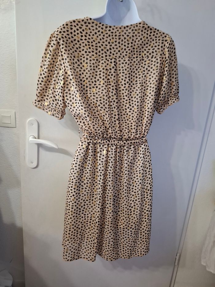 Robe taille 36 en très bon.etat Longueur 90 cm Largeur aisselle à aisselle 49 cm Largeur de taille Élastique Avec doublure et ceinture