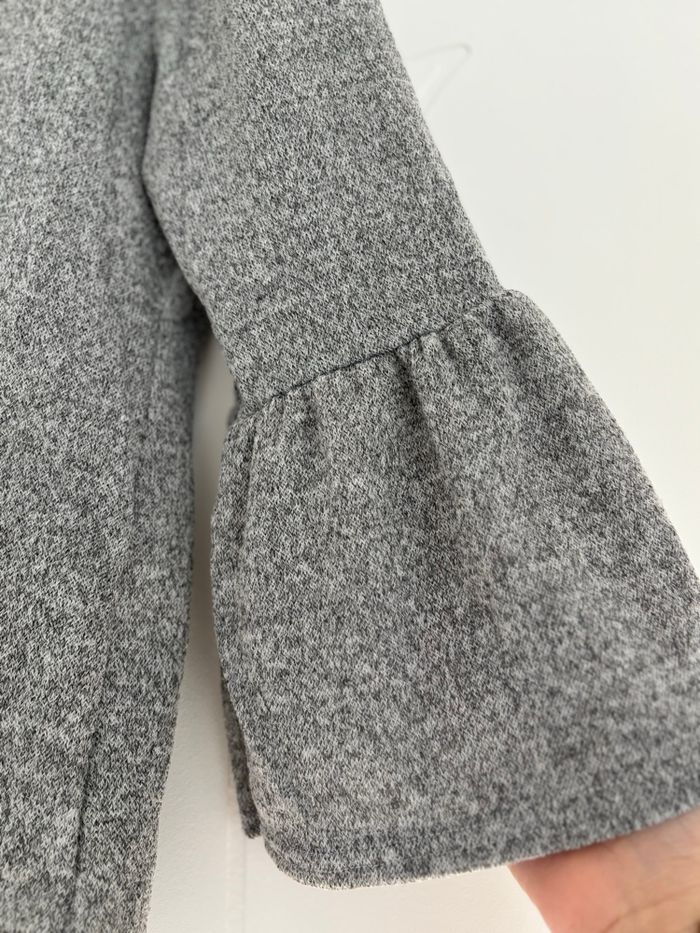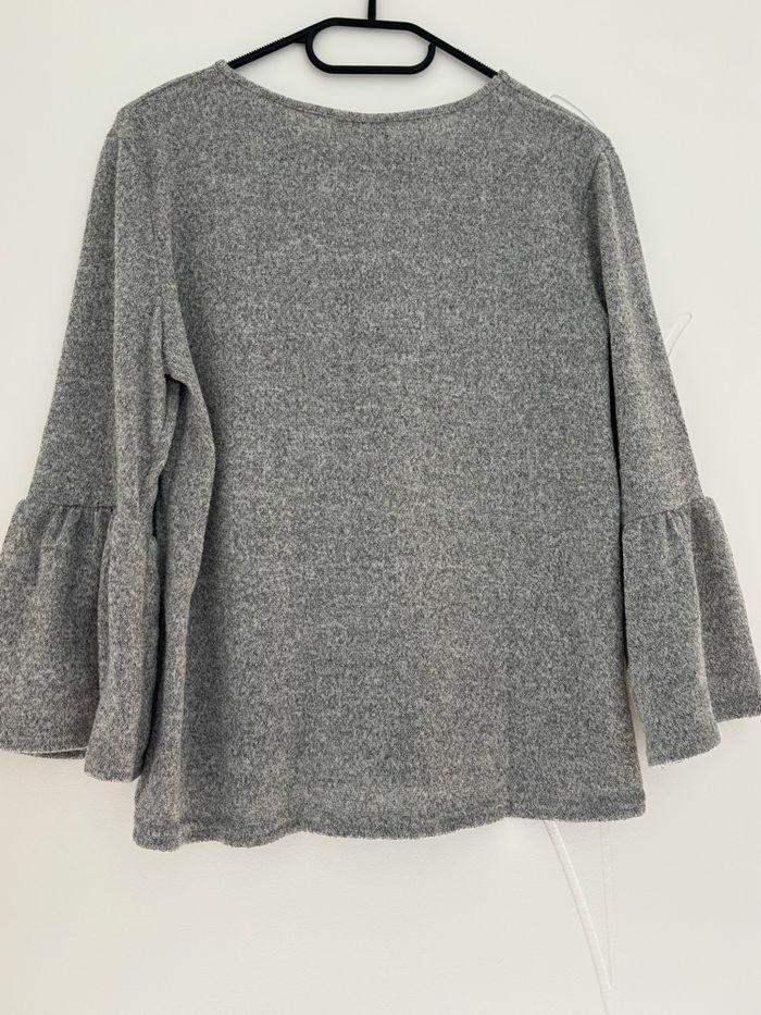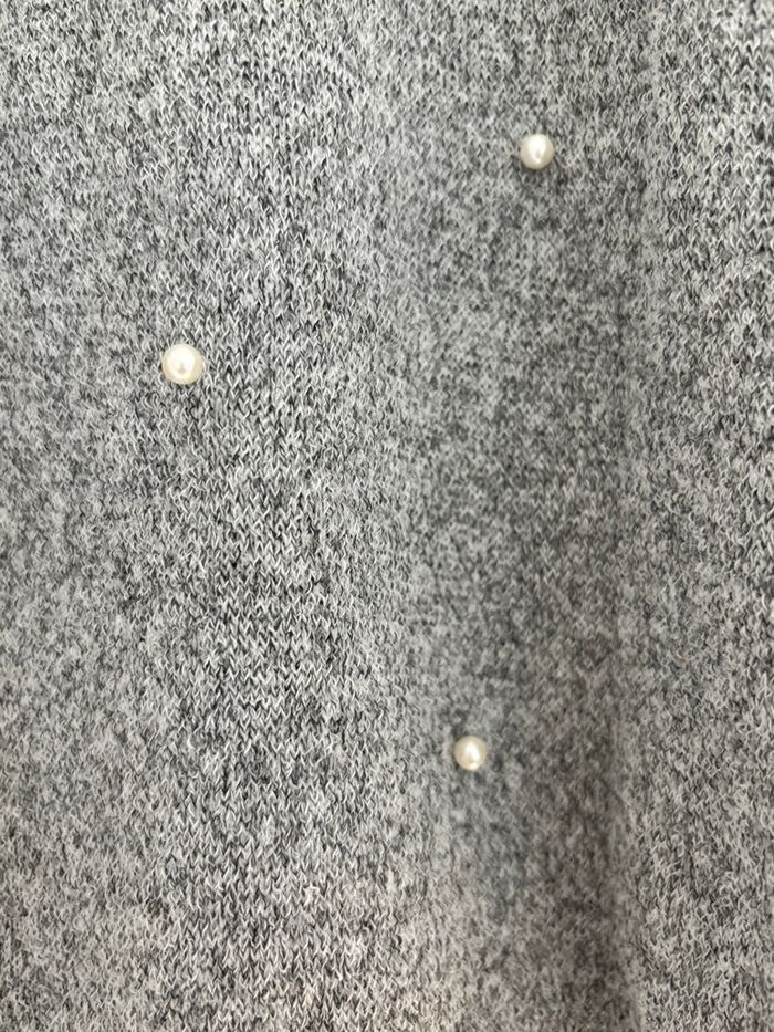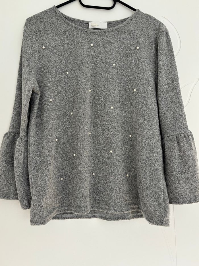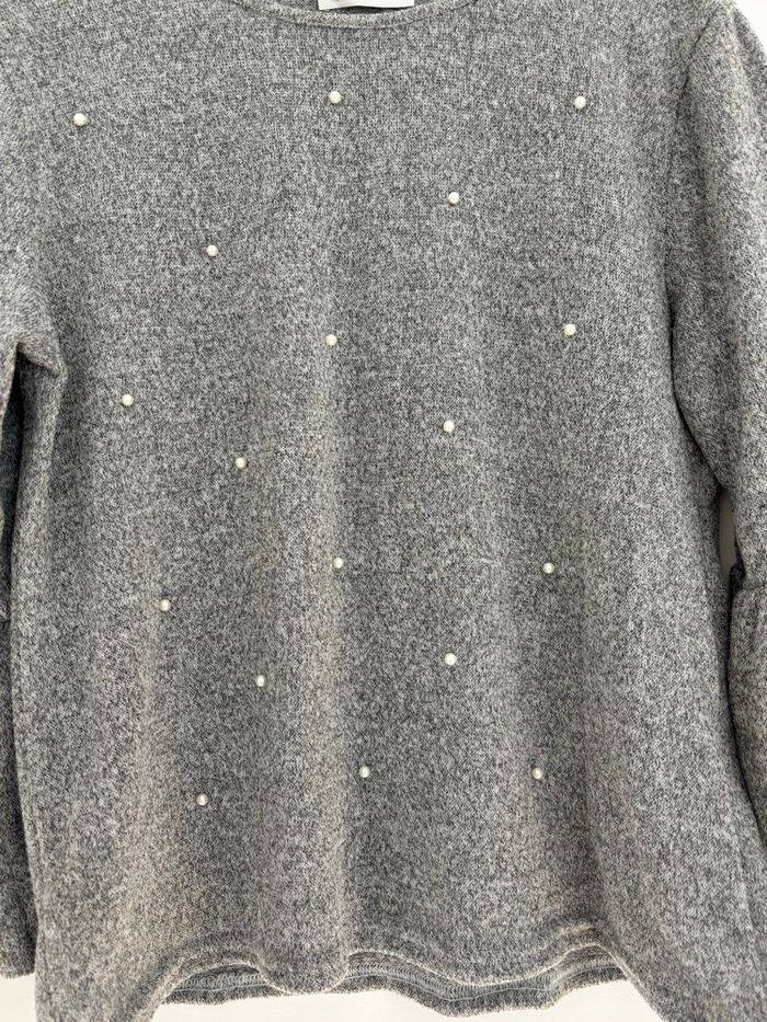 Pull col rond, manches 3/4, volants sur les manches, détails perles nacrées