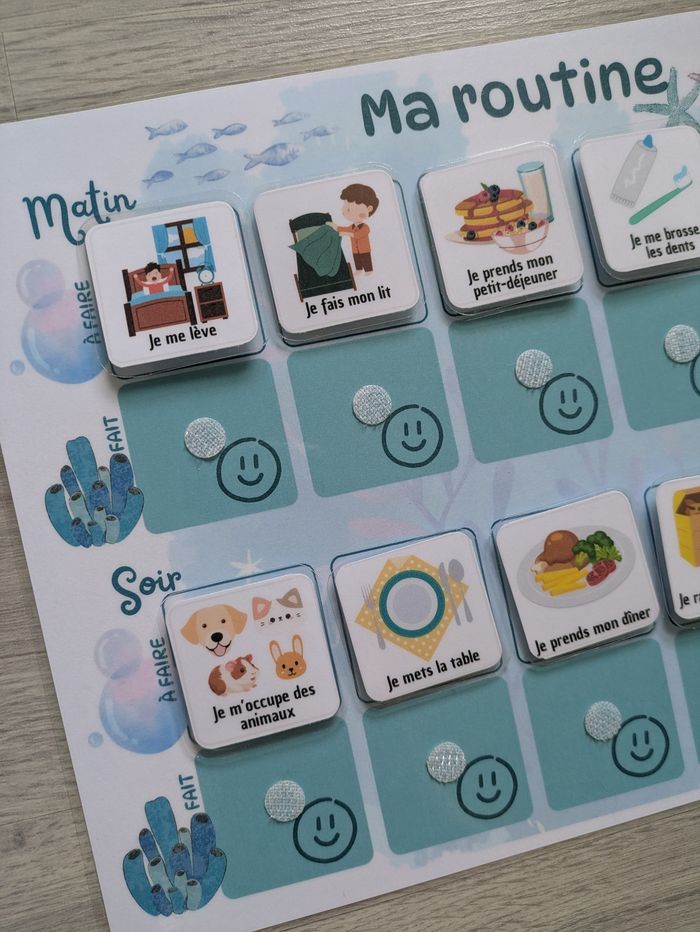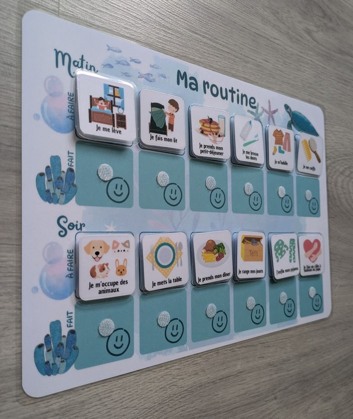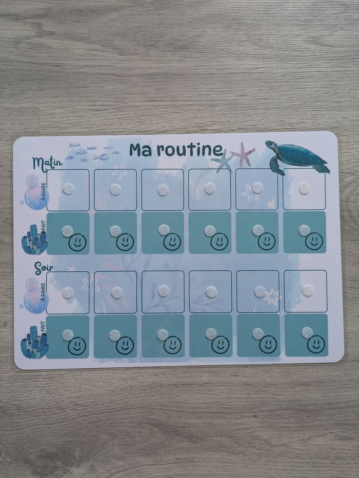 Tableau de routine enfant matin et soir tortue et autres animaux marins, rituels quotidiens - photo numéro 1