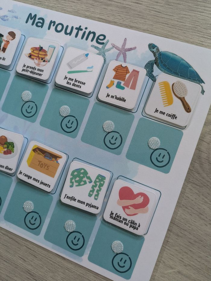 Tableau de routine enfant matin et soir tortue et autres animaux marins, rituels quotidiens - photo numéro 6