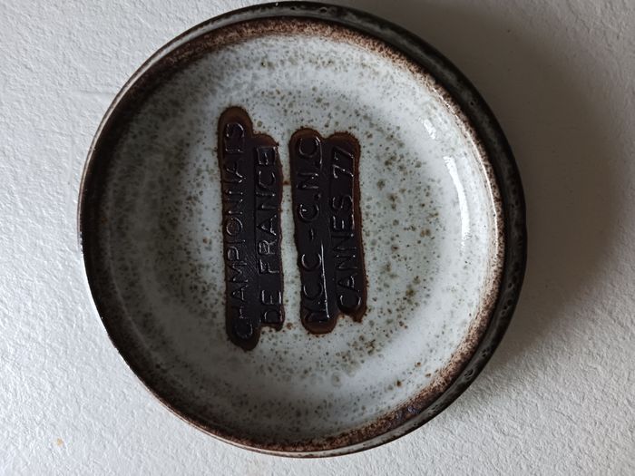 cendrier rond diam 15 cm marron et beige championnat de France Cannes 1977