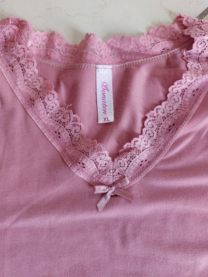 Pyjamas femme fille : 1 haut manches courtes et 1 bas pantacourt Couleur : framboise clair marque : Donaten Cet ensemble est Neuf Taille XL 90% Viscose / 10% Lycra Lavable à 30°C