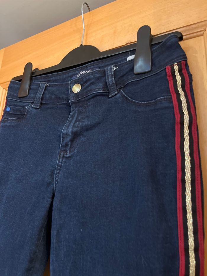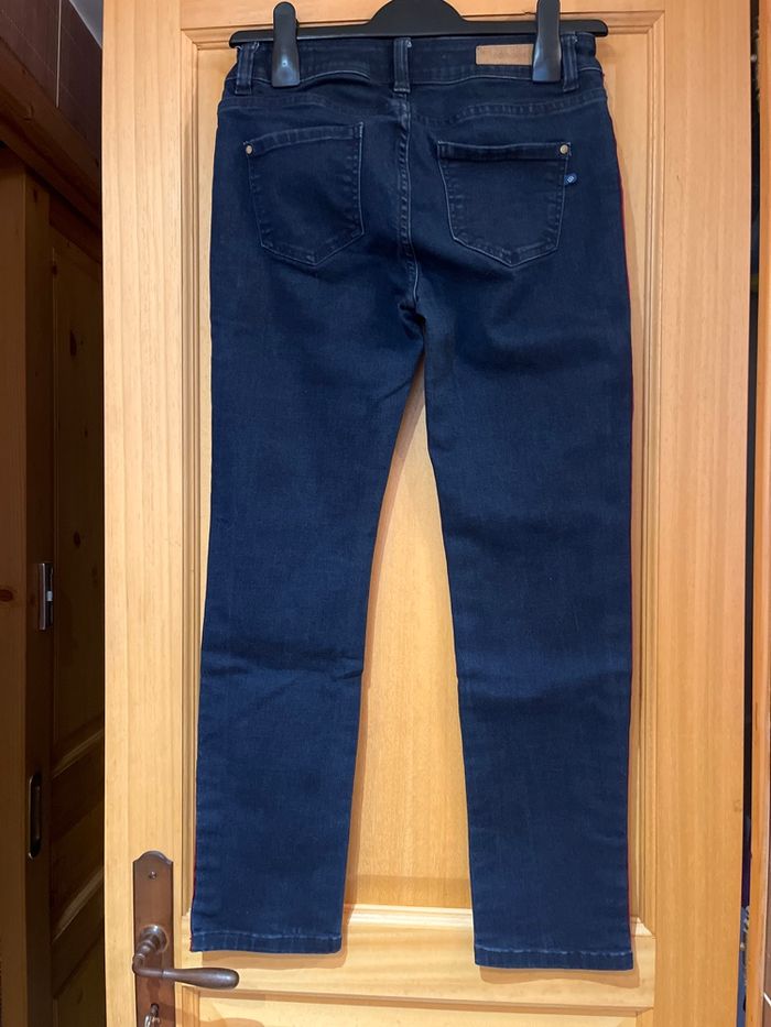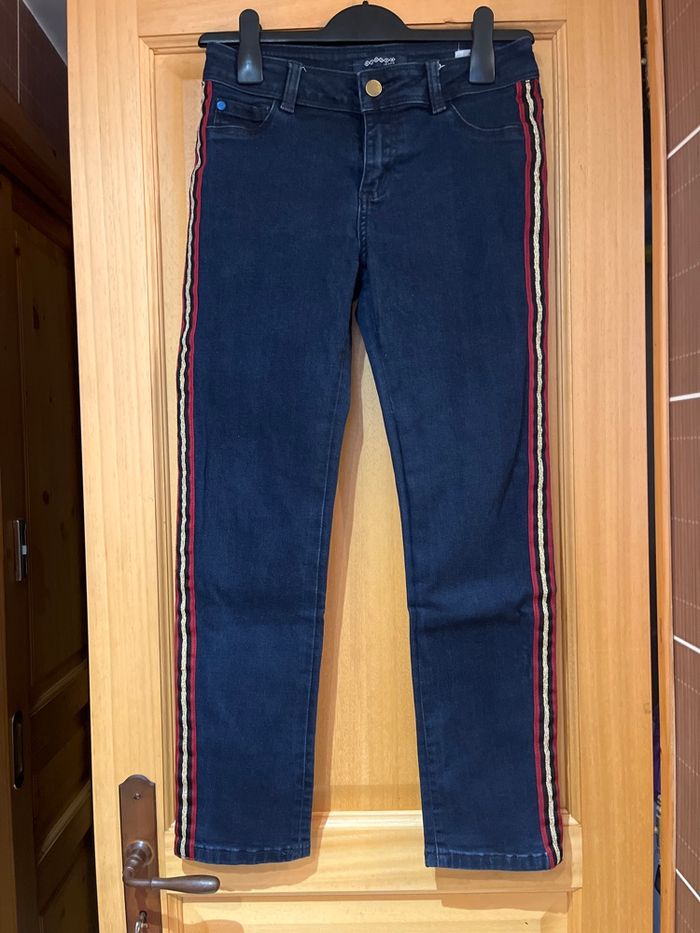Jean avec bande rouge et doré sur les côtés. Longueur de jambes 62cm.