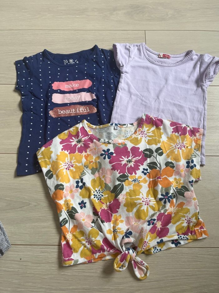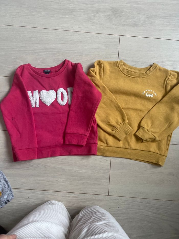 Le lot comprend : 1 sweat zippe à capuche, 1 ensemble, 11 tee-shirts ML, 3 tee-shirts MC, 2 gilets, 5 pantalons 2 bodys ML , 2 sweats , 1 col roulé, principalement Kiabi vêtements portés mais encore en bon état