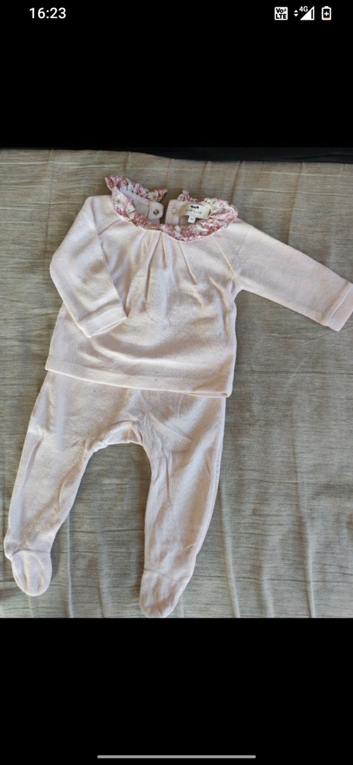 Lot vêtements fille composé de 13 pièces dont 2 pyjamas babygros, 2 pyjamas, 4 bodies manches longues, une veste, 2 teeshirts manches longues et 2 pantalons de marque Orchestra, Kiabi, Cyrillus, Lupilu... Taille 6 mois en bon état.