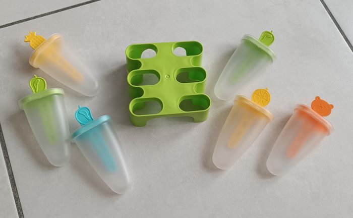 Bonjour, Vends un jeu de 6 moules à glaces. Sur support. Servi une fois.