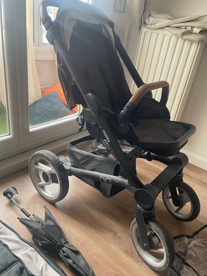 ATTENTION ⚠️ remise en mains propres en région lyonnaise ⚠️ Caractéristiques Evo Mutsy : Poussette légère et polyvalente : invite à l'aventure Confortable pour les parents et les enfants Assise spacieuse réversible Multiples inclinaison du dossier Position à plat idéale pour la sieste Repose-pieds réglable Grandes roues à l'arrière Roues avant pivotantes Suspensions dans le châssis pour plus de confort Pliage facile avec ou sans l'assise Canopy UV50+ avec auvent pare-soleil Fenêtre en mesh Harnais 5 points de sécurité ajustable Barre frontale rotative et amovible Poignée réglable en hauteur Panier shopping sous l'assise Châssis robuste Détails en simili cuir Tissus doux de grande qualité Compatible avec des nombreuses coques auto (adaptateurs non inclus) Utilisable de la naissance à 22kg Dimensions Poussette Evo : Poids : 11.8kg Dimensions pliée : 69x61x30cm Dimensions dépliée : 89x61x86cm INCLUS : Nacelle nouveau-né Cape de pluie Chancelière Ombrelle