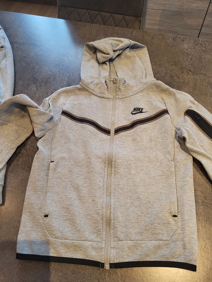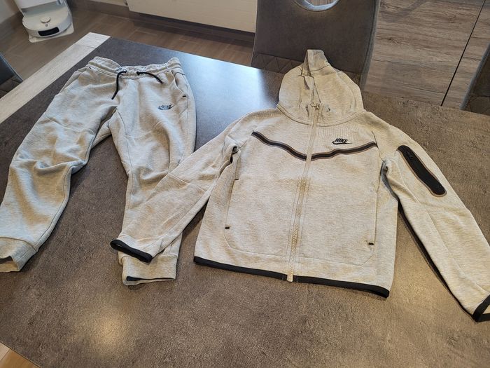 Bonjour, Je vends ce bel ensemble de jogging nike tech gris. Taille S soit 128/137cm 8/10ans. Très bon état malgré le logo légèrement abîmé sur le haut (voir photo).
