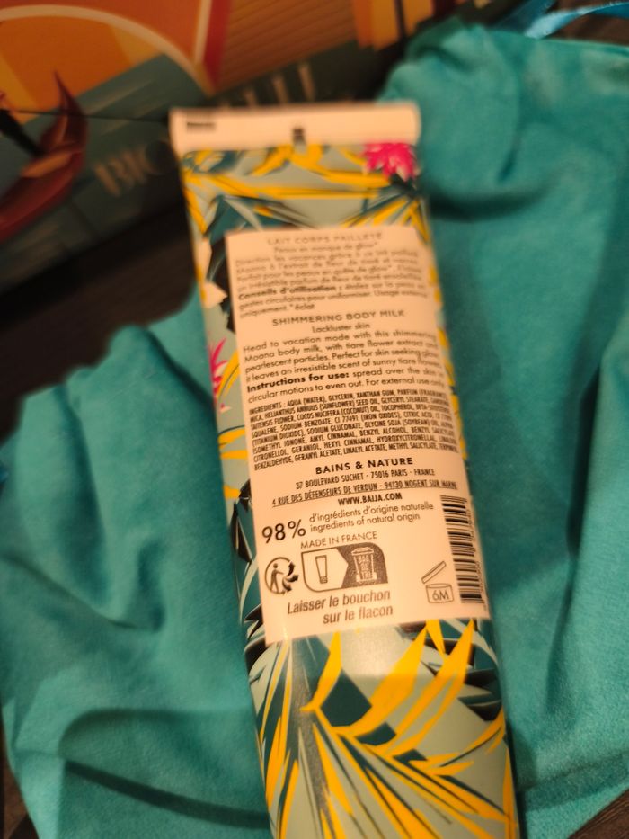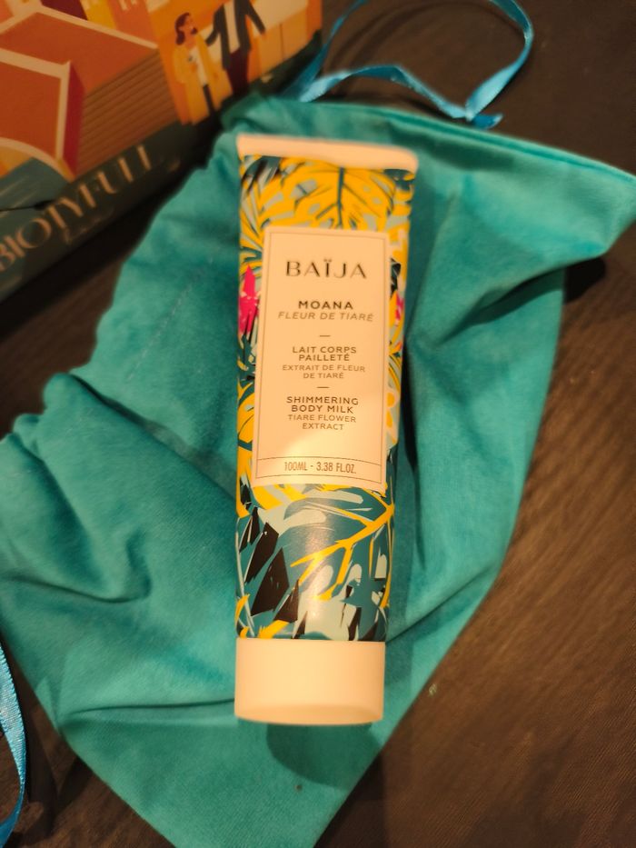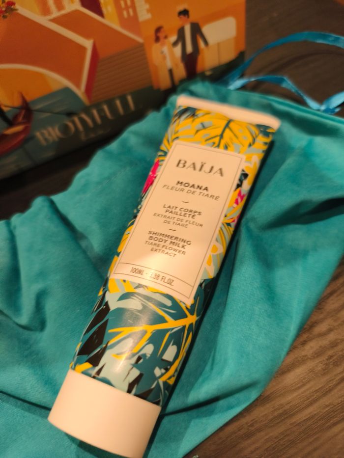 Ce produit est le Lait Corps Pailleté Moana à la fleur de tiaré de la marque Baïja. Ce soin est conçu pour hydrater la peau tout en la parant d'un voile scintillant grâce à des nacres illuminatrices. Caractéristiques principales Parfum : Fragrance ensoleillée de fleur de tiaré. Action : Hydrate, assouplit et illumine la peau avec un fini scintillant. Composition : Formulé avec 98% d'ingrédients d'origine naturelle, il contient de l'extrait de fleur de tiaré. Format : Tube de 100 ml Neuf
