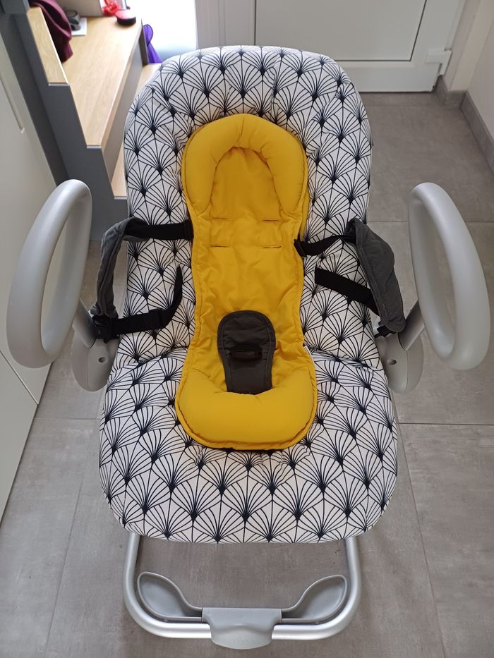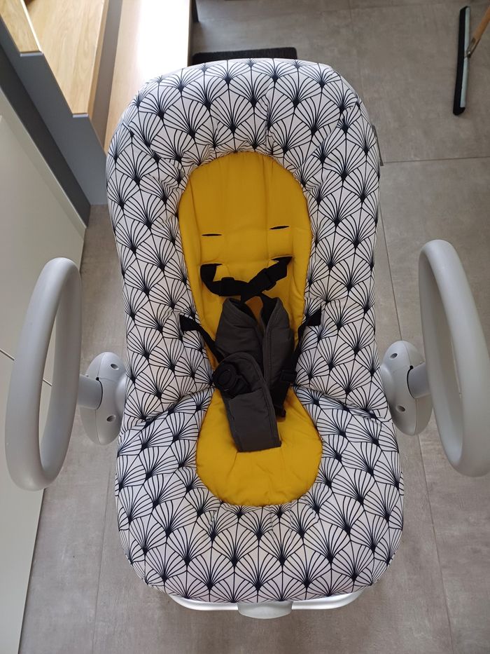 Transat Béaba Up and down V4 Palm tree En parfait état, très peu utilisé. Usage soigné et maison non fumeur ✨️👌 Reglable de haut en bas, 4 positions, 3 inclinaisons. Vendu avec coussin réducteur pour les premiers mois de bébé. Très pratique